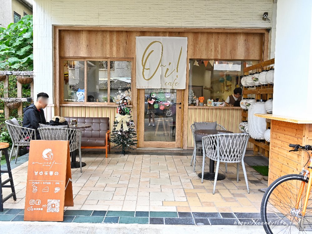 O~i! cafe就位在台中西區五權西五街上,鄰近美術園道,店面外觀散發著濃厚的日式雜貨風情,大面積的淺色木質牆面搭配溫潤的木門,給人一種一秒瞬移到日本街頭咖啡館的錯覺