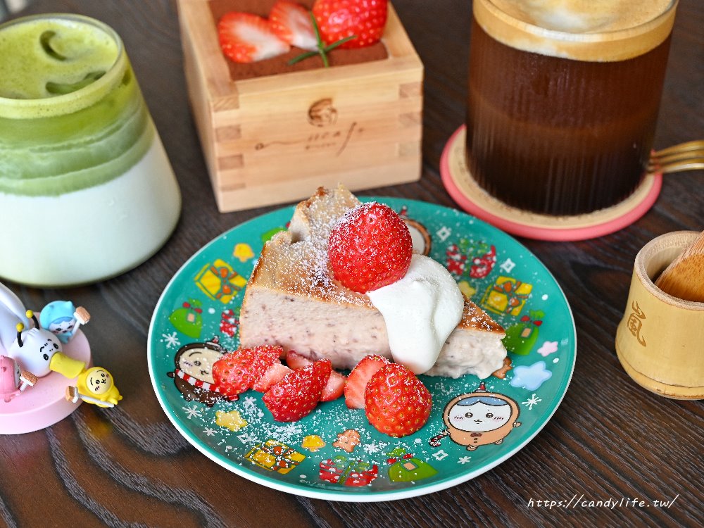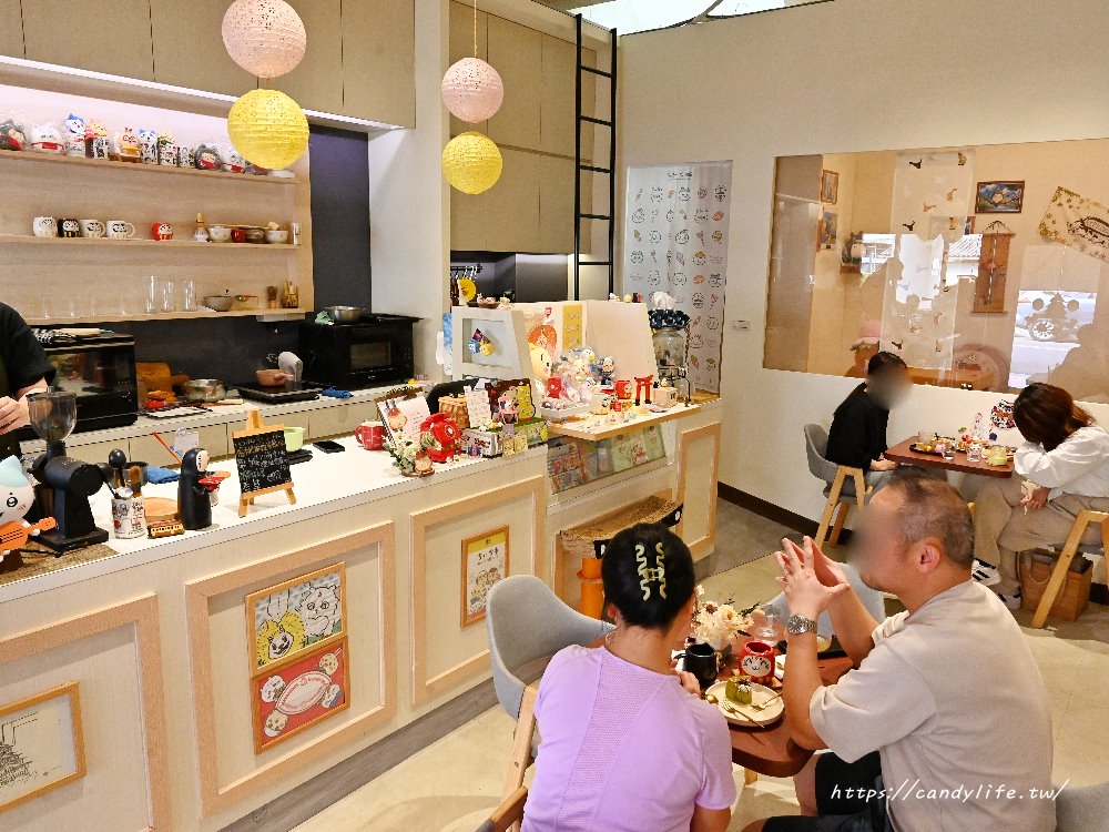 推開木門進到店內,空間雖然不算大,但配置得非常溫馨,座位數大約可容納十餘位客人,屬於精緻小巧的咖啡廳,整體風格延續了外觀的日系淺木色調,明亮的吧檯區擺滿了老闆娘熱愛的「吉伊卡哇」週邊商品,從玩偶、吊飾到餐具應有盡有,每個角落都能發現驚喜,簡直是粉絲的夢幻天堂!