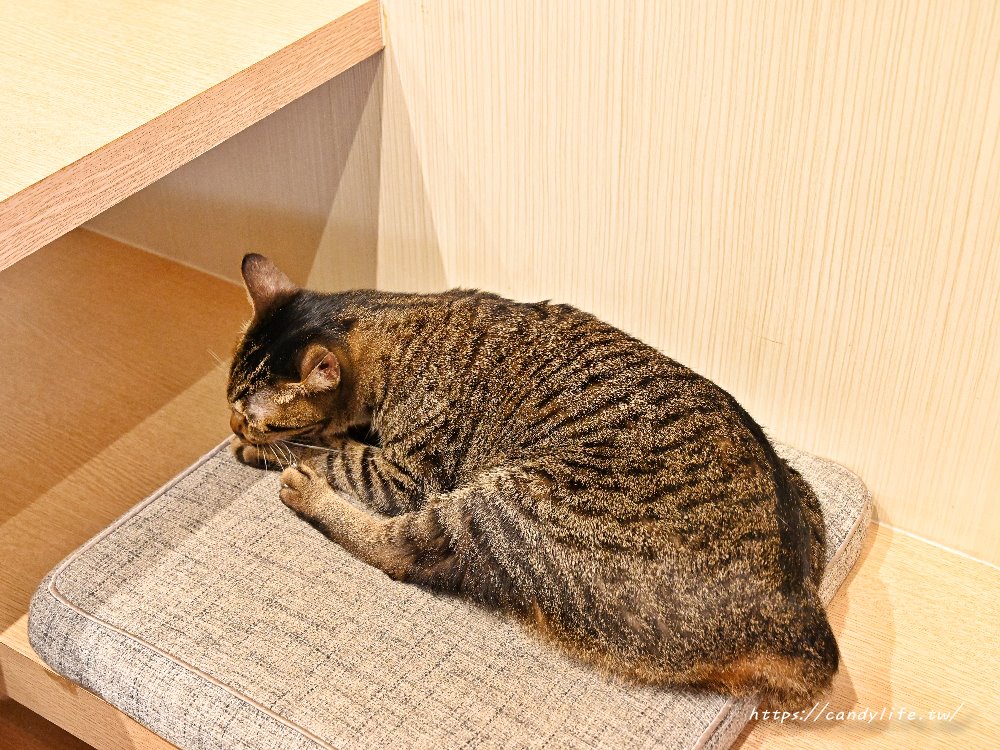 吧檯上方懸掛著色彩柔和的日式燈籠,架子上則整齊排列著招財貓與日式茶具,細節處流露著道地的日本韻味,除了吧檯前的座位,店內多以兩人座為主,最療癒的是,兩隻可愛的店貓常會隨興地在椅子下或客座區出沒,甚至大方地在空椅子上補眠,與客人保持著一種自在又親近的距離感