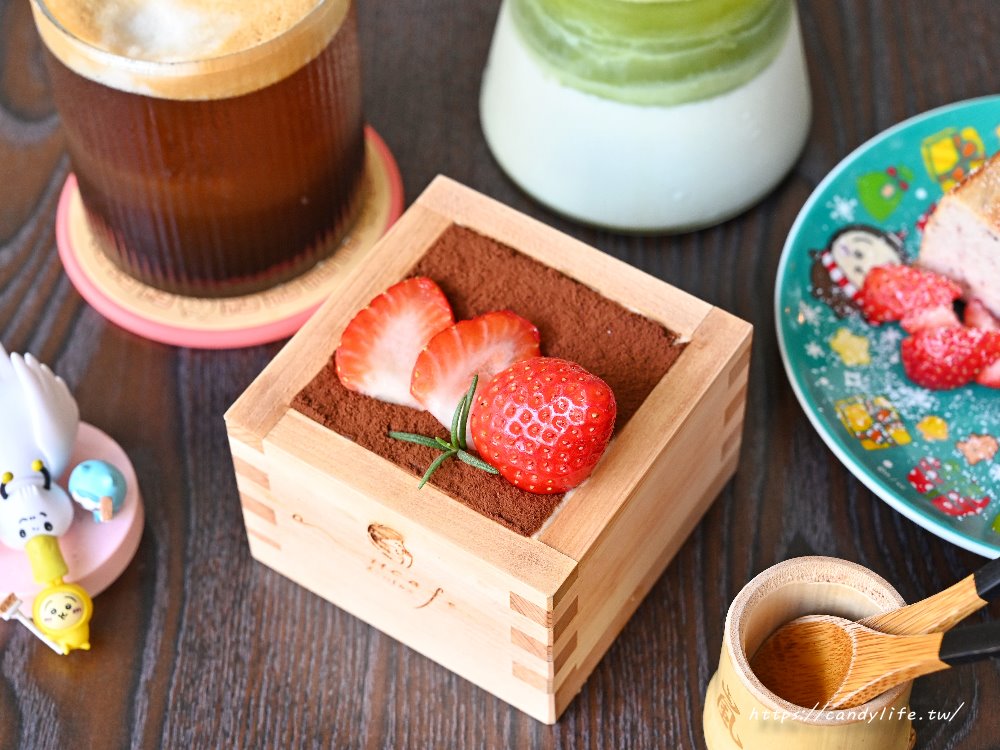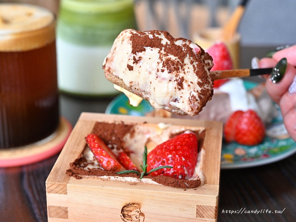 除了巴斯克,這款莓上加莓提拉米蘇更是讓現場少女心噴發!這款甜點特別限定「僅限內用」,因為它使用了檜木木盒盛裝,上頭鋪滿了微苦的細緻可可粉,並豪邁地放上鮮豔大草莓,光是外型就讓人想拍個不停