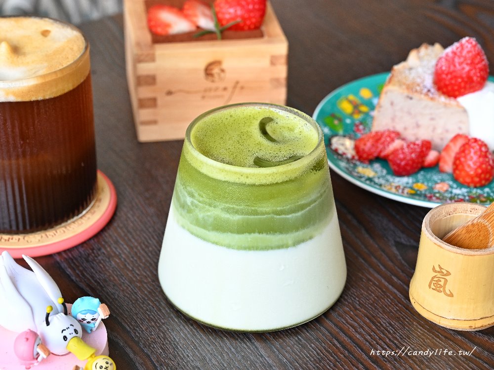 除了視覺上的療癒,O~i! cafe 在餐點製作上更是絲毫不馬虎。店內的抹茶系列飲品非常受歡迎,這都要歸功於美麗的日本老闆娘,看著她神情專注地拿起茶筅,純熟而節奏穩定地進行「手刷抹茶」,每一道動作都充滿了日式職人的優雅與嚴謹