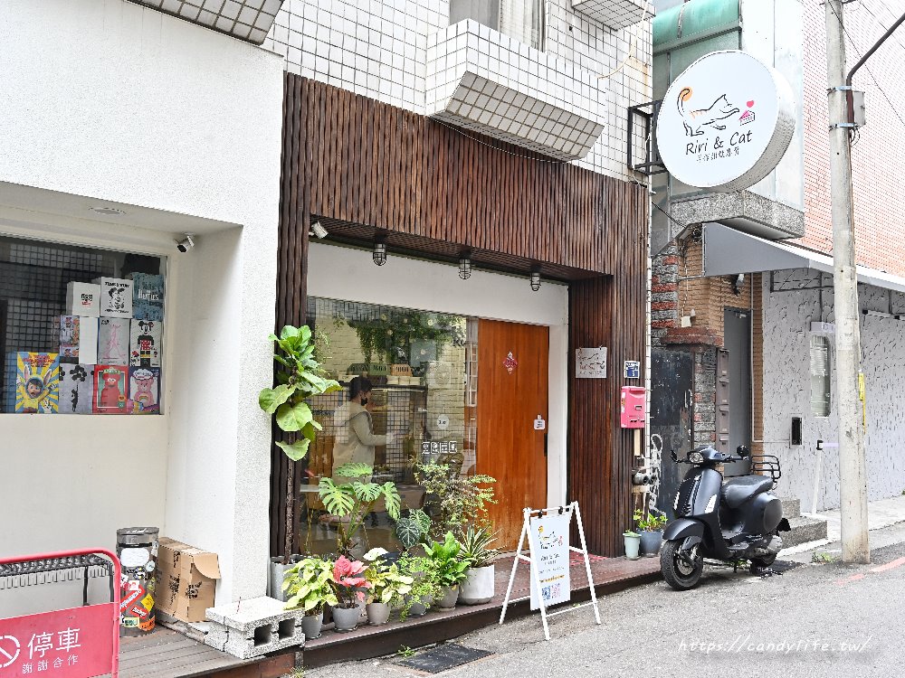 Riri & Cat 手作甜點專賣就藏身在台中西區美村路一段的巷弄內,雖然外觀低調隱密,但那溫潤的木質門面搭配白色圓形招牌,在靜謐的巷弄中顯得格外可愛,提醒想來吃甜點的朋友,因巷弄空間比較狹小,開車過來的話建議先在美村路上找好停車位再步行進來