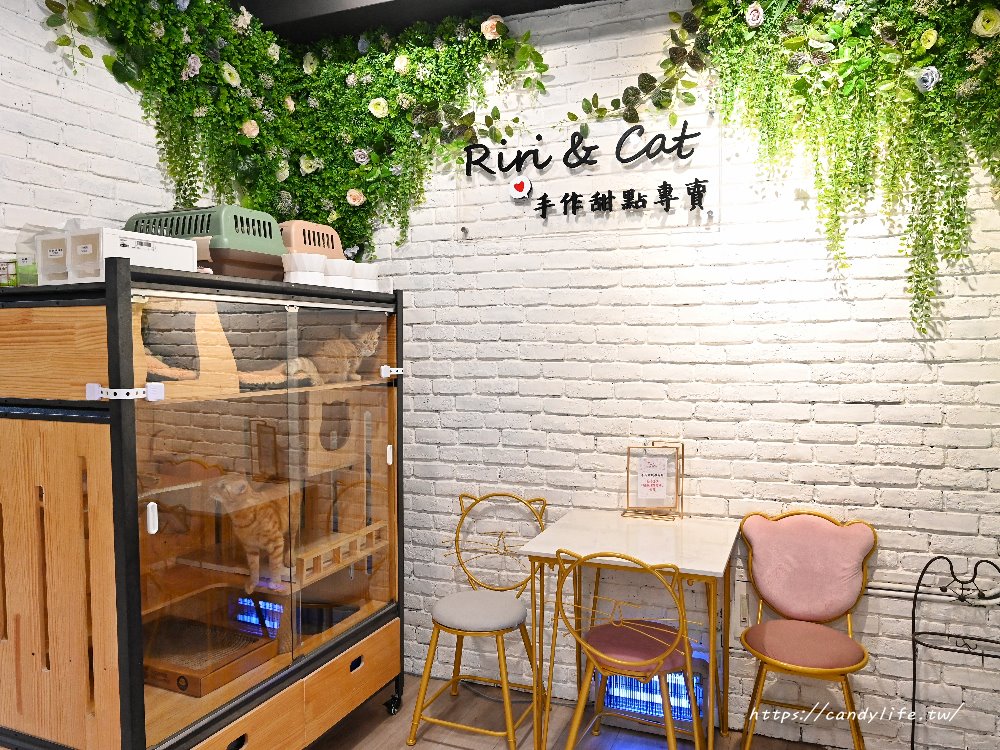 走進Riri & Cat,店內風格走的是清新文青風,雖然這是一間專門提供外帶服務的甜點店,沒有開放內用座席,但店家的裝潢一點也不馬虎,連候餐區的椅子都是超可愛的貓咪造型,細節感滿分!最吸引目光的莫過於店裡的靈魂人物,可愛的小貓咪們!看著貓咪在透明貓房裡悠哉活動的模樣,等候甜點現包的過程也變得超級療癒