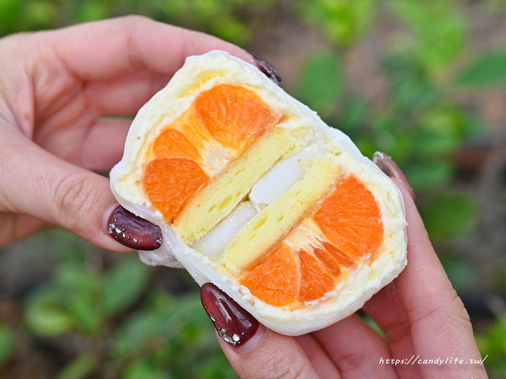 這一口咬下真的會「爆漿」!砂糖橘本身非常多汁,配上輕盈絲滑的卡士達鮮奶油與戚風蛋糕,口感豐富又和諧。砂糖橘的清爽果香完美中和了卡士達的奶香,這顆大福吃起來也清爽不膩口