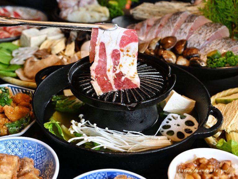 想吃富含膠原蛋白的花膠黃金雞湯鍋在尚石苑石頭火鍋專賣也吃得到,滿滿花膠搭配雞湯下去熬煮,湯底呈現金黃色澤,香濃好喝,另一鍋新品火烤石鍋也超讚,上層炙燒烤肉,鎖住焦香肉汁,下層火鍋慢煮,吸收肉汁精華,燒烤、火鍋一次滿足,還有近35種蔬菜自助吧及滷肉飯吃到飽,台中沙鹿必吃美食推薦