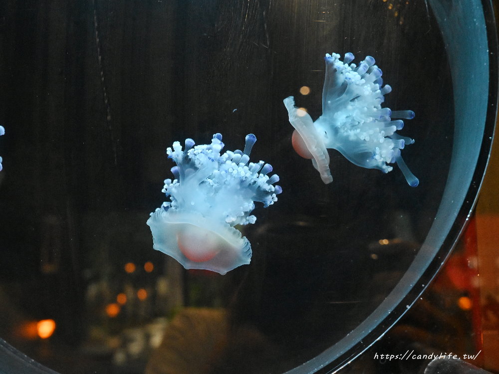 不用跑到海生館,在噓。咖啡就能欣賞到超療癒的水母!連超可愛的「荷包蛋水母」這裡也有,還有最近超夯的水母拍貼機,快來糾好友一起來來打卡