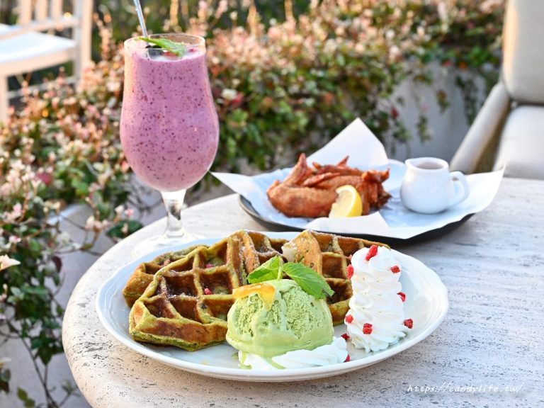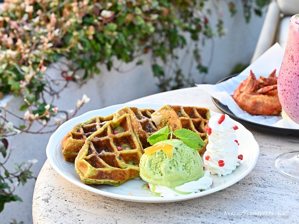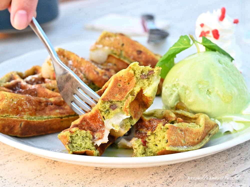 眺高的鬆餅也是人氣必點,現烤鬆餅外酥內Q,裡頭還藏著會拉絲的麻糬,旁邊佐上濃郁帶苦甜風味的抹茶冰淇淋,冰熱交融,層次感豐讓人一口接一口