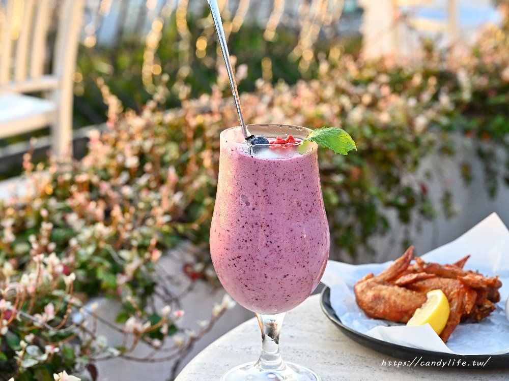 眺高這杯野莓優格果昔也好美,採用多種野莓下去打成的果昔,入口酸甜,果昔濃郁,很適合搭配甜點解膩
