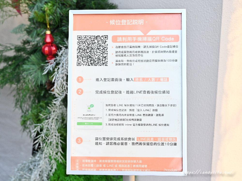 如果沒有預先訂位的朋友,來到Sundate cafe時先至門口掃QR code登記候位,登記完畢後可以至LINE上查看候位通知