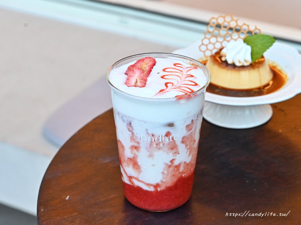 這杯草莓歐蕾也太美了吧!最底層是店家自製草莓醬,搭配鮮乳坊鮮奶,甜度是固定的,喝之前記得攪拌均勻,酸甜滋味交織著濃濃奶香,如果平時喝無糖的朋友,這杯可能會覺得偏甜了些