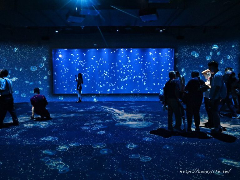 全台最大、寬達8米的巨型水母展缸,據說裡頭有數千隻水母,搭配沉浸式互動投影畫面真的很美