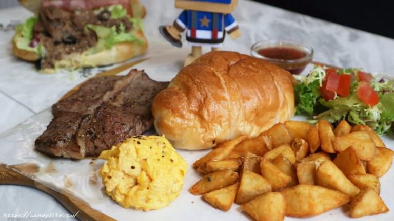 店裡的人氣早午餐,裡頭有牛排、薯塊、麵包、沙拉、炒蛋及飲料,份量還不少呢