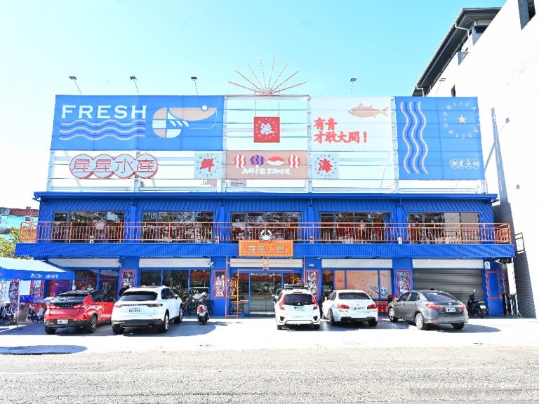 星星水產位在台中太平旱溪西路二段這邊,近精武車站、新福公園、旱溪夜市,加上一旁的專屬停車場占地超過千坪,裝潢以海洋藍為主,店面看起來超大間,相當氣派呢